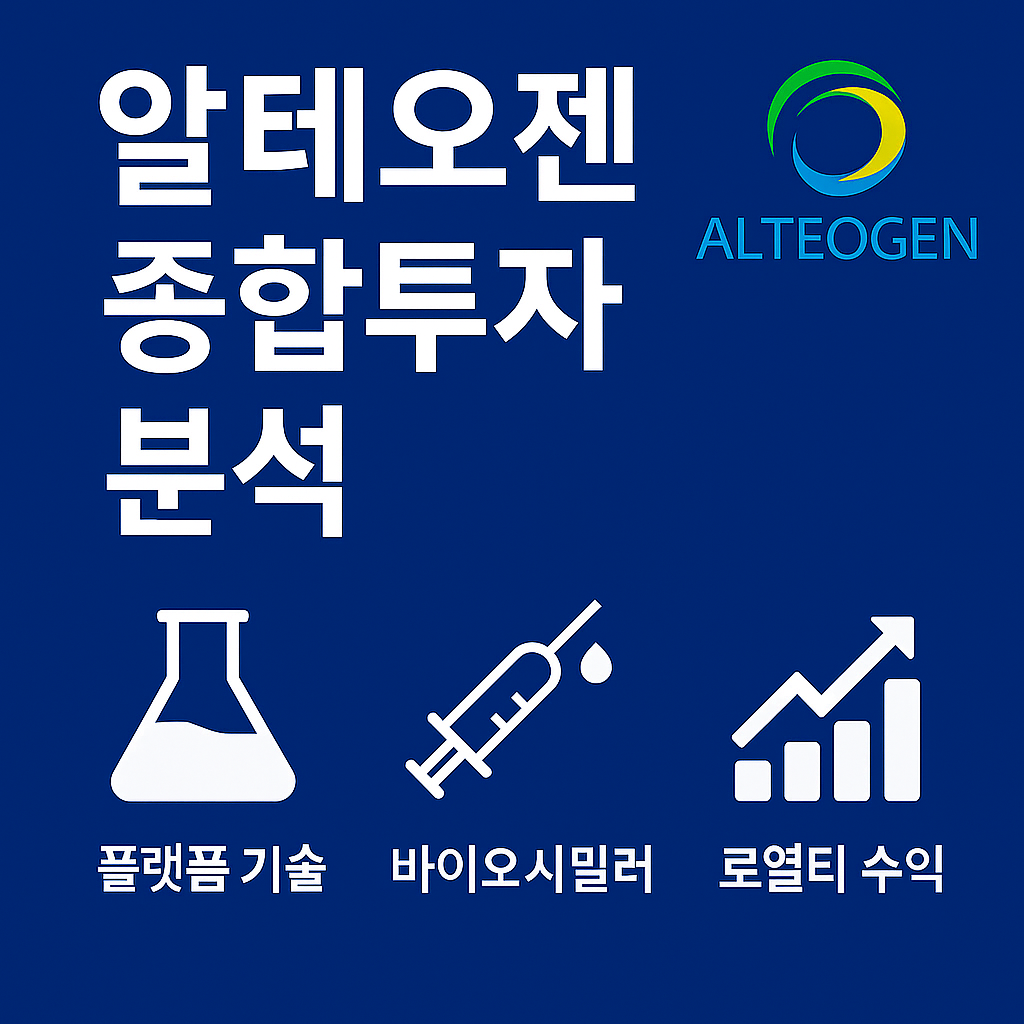 알테오젠은 기술수출 중심 바이오기업의 성공 모델로서, 로열티 기반 고마진과 글로벌 신뢰라는 두 축이 강점입니다. 다만 현재 주가는 2027~2028년 성과를 상당 부분 선반영하고 있으므로, 중장기 조정 시 저가 매수 전략이 합리적입니다.