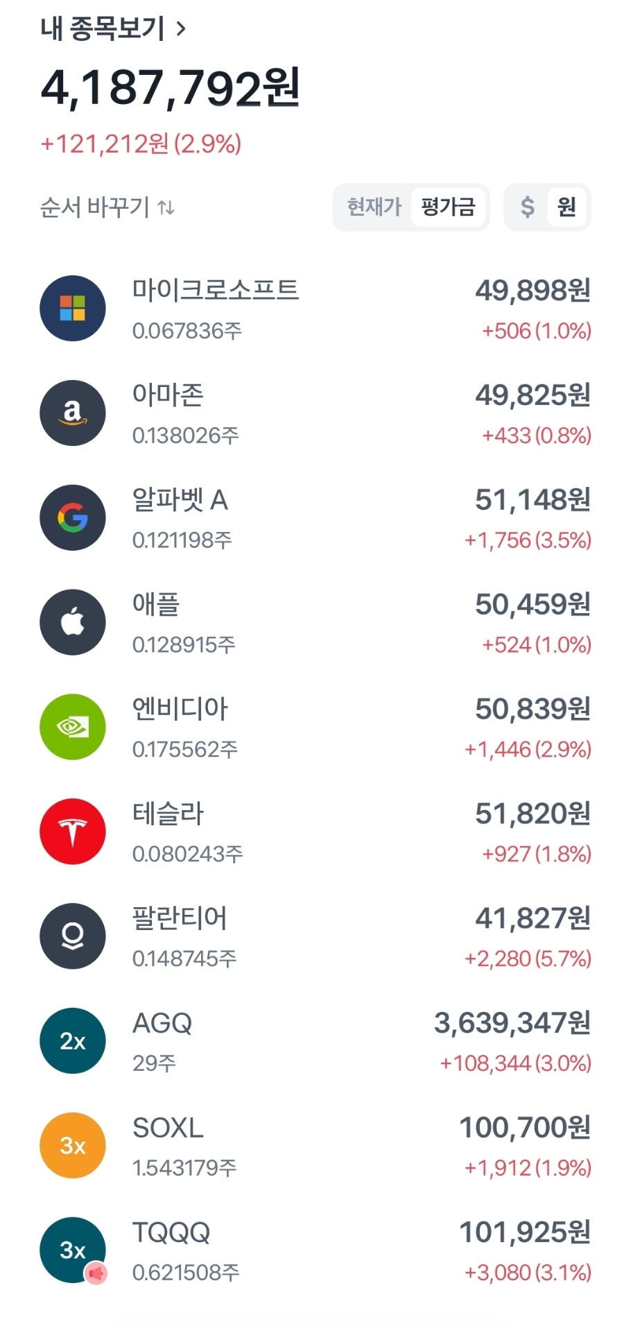 AGQ가 반등하면서 총금액이 플러스로 전환되었습니다.
