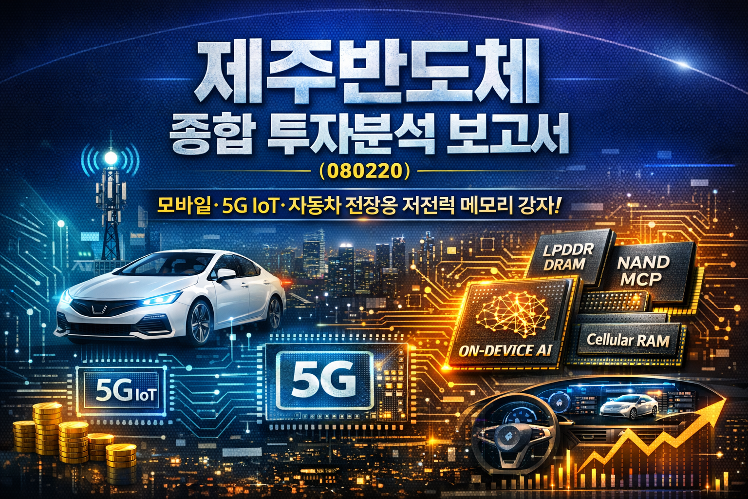 #제주반도체, #제주반도체주가, #080220, #반도체주, #반도체투자, #팹리스기업, #저전력메모리, #LPDDR, #온디바이스AI, #AI반도체, #5GIoT, #자동차전장, #시스템반도체, #반도체수혜주, #코스닥반도체, #성장주분석, #주식투자분석, #가치투자, #중기투자전략, #반도체사이클, #실적성장주, #고평가논란