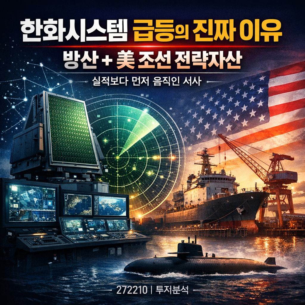 #한화시스템, #272210, #한화시스템주가, #방산주, #방위산업, #K방산, #레이다, #천궁2, #중동방산, #방산수출, #통합방공, #전투체계, #SAR위성, #위성사업, #구미신공장, #필리조선소, #미국조선, #조선테마, #핵잠수함, #외국인순매수, #실적전망, #밸류에이션, #투자전략, #분할매수, #리스크관리