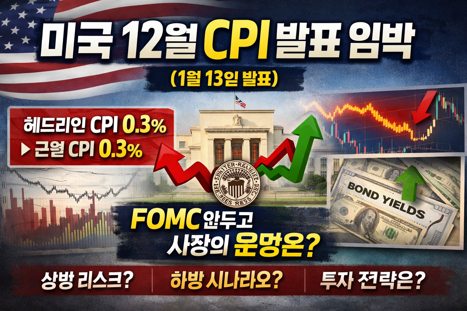 #미국CPI, #12월CPI, #CPI발표, #미국물가, #인플레이션, #근원CPI, #헤드라인CPI, #FOMC, #연준, #금리인하, #금리전망, #미국채권, #국채금리, #달러, #증시전망, #나스닥, #성장주, #기술주, #거시경제, #경제지표, #시장전략, #변동성, #리스크관리, #투자전략, #미국경제