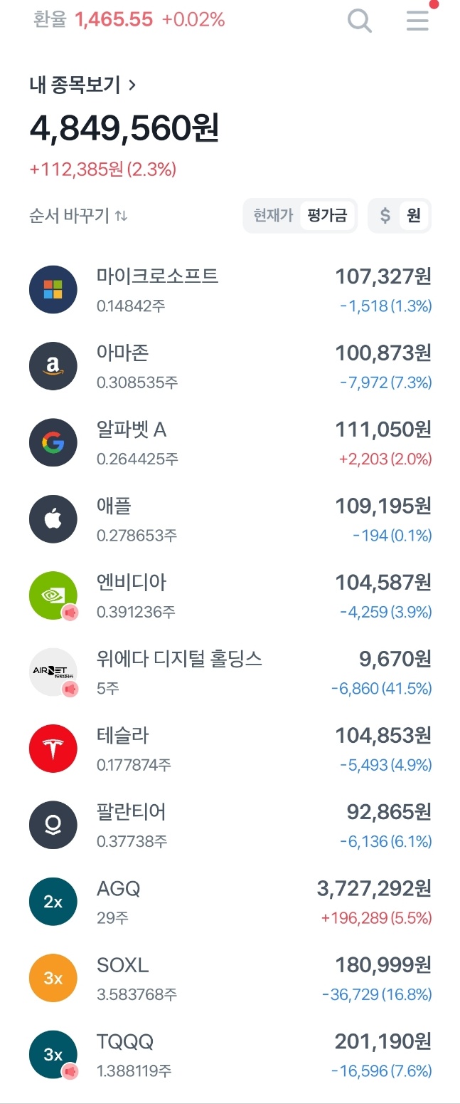 오늘 내일 큰폭으로 하락이 나온다면 1~2만원 매수가 아닌 현재 투자금 만큼 줍줍하도록 하겠습니다.